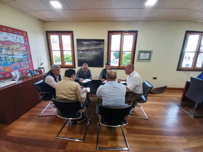 El presidente del Cabildo de Fuerteventura, Sergio Lloret, y el vicepresidente y consejero delegado de Aguas, Juan Nicolás Cabrera, han mantenido hoy, 9 de marzo, una reunión con el gerente y distintos técnicos del Consorcio de Abastecimiento de Aguas (CAAF) para ultimar los procedimientos necesarios para paliar y resolver la situación de desabastecimiento que sufren algunas zonas de la Isla y que ha requerido la declaración de ‘Emergencia Hídrica’ con el fin de ofrecer soluciones de forma inmediata.