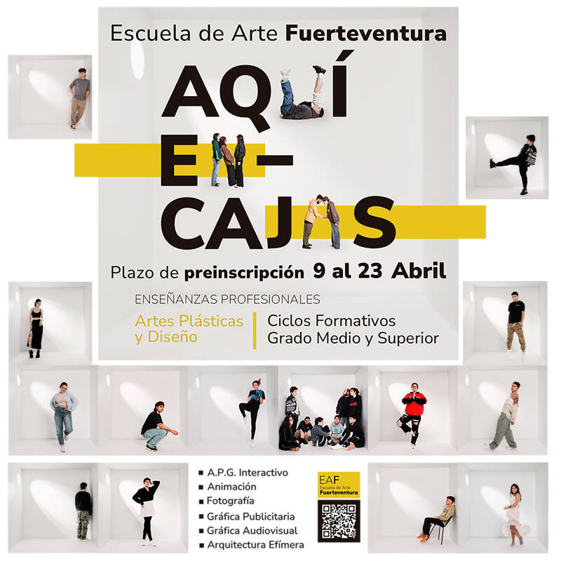 - Del 9 al 23 de abril, permanecerá abierto el plazo de reserva gratuita de plazas en cinco ciclos superiores y uno de grado medio, todos ellos orientados al diseño y las artes gráficas y audiovisuales. Más información en www.eafuerteventura.com