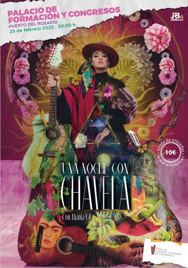 El Palacio de Formación y Congresos de Fuerteventura acoge el tributo y espectáculo musical Una noche con Chavela este viernes, día 25 de febrero, dentro de la agenda cultural del Cabildo de Fuerteventura. La actriz y cantante Thania Gil será la protagonista que dará voz a la artista mexicana, reviviendo los momentos más significativos de su vida y rememorando los clásicos de su música.