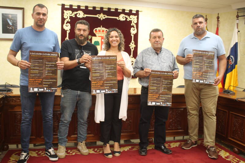 El Ayuntamiento de Antigua, desde las concejalías de Cultura, Deportes y Festejos, y la asociación patrimonial El Efequén organizan el II Encuentro Cultural Ahehiles, que han presentado este lunes 2 de octubre dando a conocer el alcalde, Matías Peña, los concejales implicados, Jonathan Peña, Samuel Torres y Agustín Rodríguez y los representantes de la asociación, Federico Martín y Verónica Rodríguez, el amplio programa de actos, talleres y juegos que acoge la plaza de Antigua este sábado 7 de octubre de 10:00 a 22:00 horas.