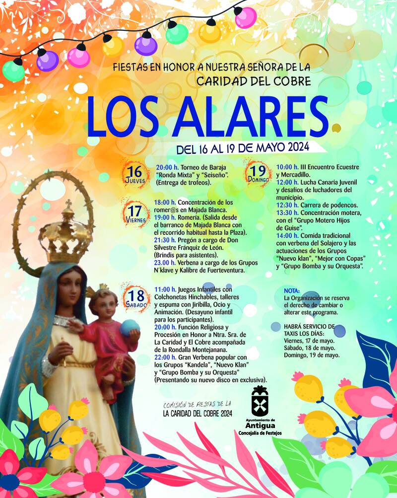Los Alares celebran sus Fiestas en Honor a Nuestra Señora de la Caridad del Cobre, organizadas por la Comisión de Fiestas y el Ayuntamiento de Antigua desde la concejalía de Festejos que dirige, Agustín G. Rodríguez.