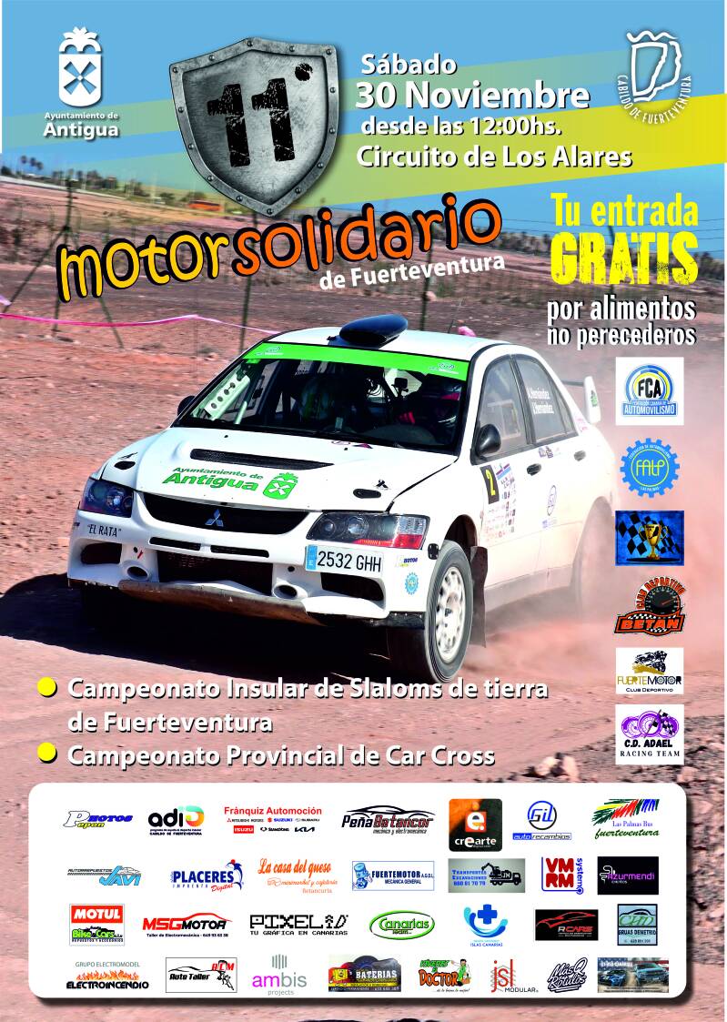Una nueva edición del MotorSolidario que es resultado, señala el concejal de Deportes, Samuel Torres, de la unión de los clubs del motor de Fuerteventura, en esta ocasión, los clubs Tibiabín, Betán, Fuertemotor y Adael, que logran ir de la mano de las federaciones del automovilismo regional y provincial, y contar con la plena colaboración del Ayuntamiento de Antigua y el apoyo del Cabildo de Fuerteventura, además de numerosas empresas y casas comerciales patrocinadoras.