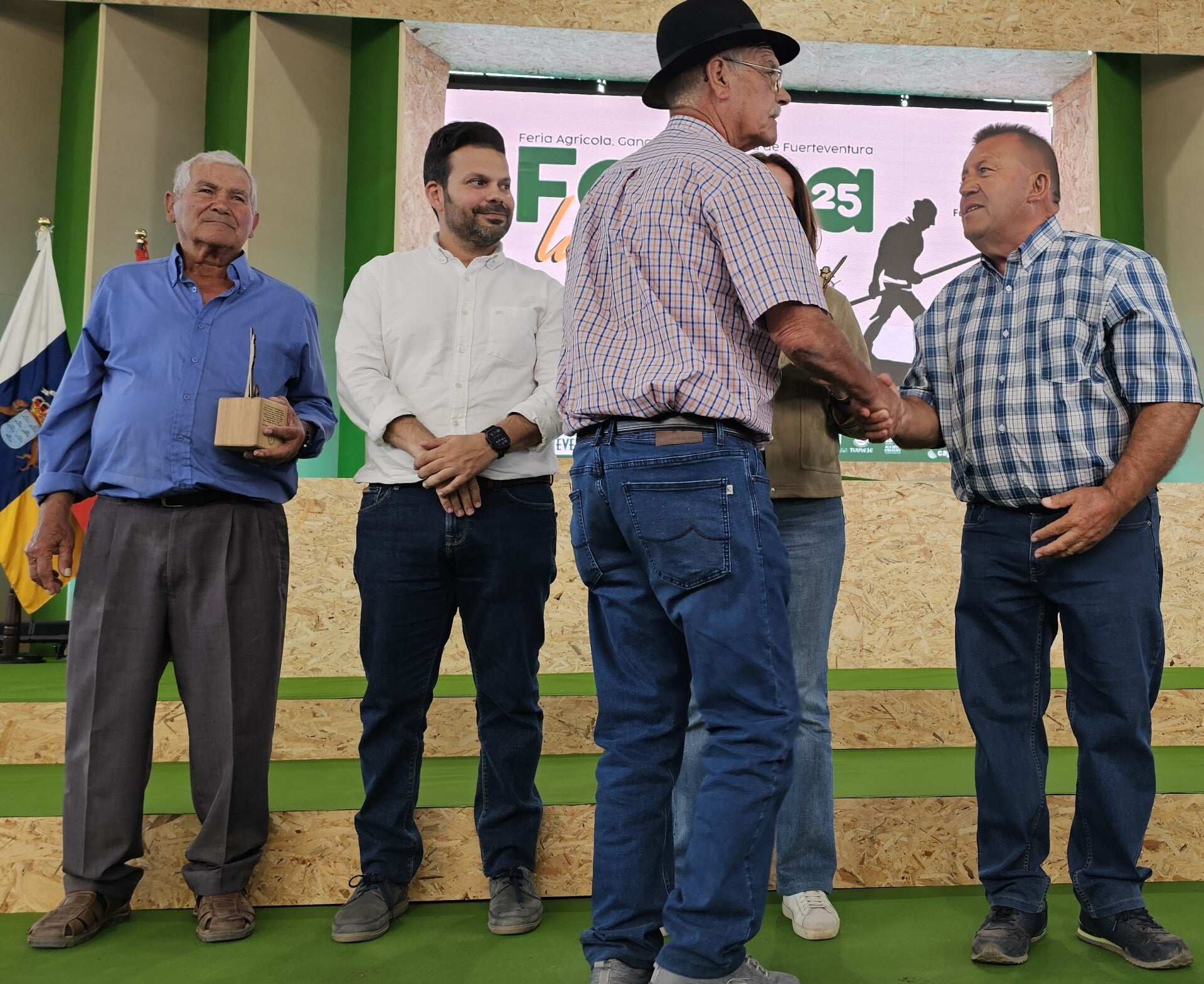 Feaga 2025 ha sido un éxito en muchos aspectos, afirma el concejal Estupiñán, y Antigua ha ofrecido y presentado lo mejor del Municipio, además del reconocimiento a nuestras ganaderas, también destacar al Comisionado del Mancomún de Antigua que vuelven a protagonizar una apañada con la colaboración de ganaderos de toda la isla, coordinados por el veterano Comisionado Tomás Acosta, que junto a Pedro Moseguez y demás comisionados de la isla, recibió también un merecido reconocimiento.