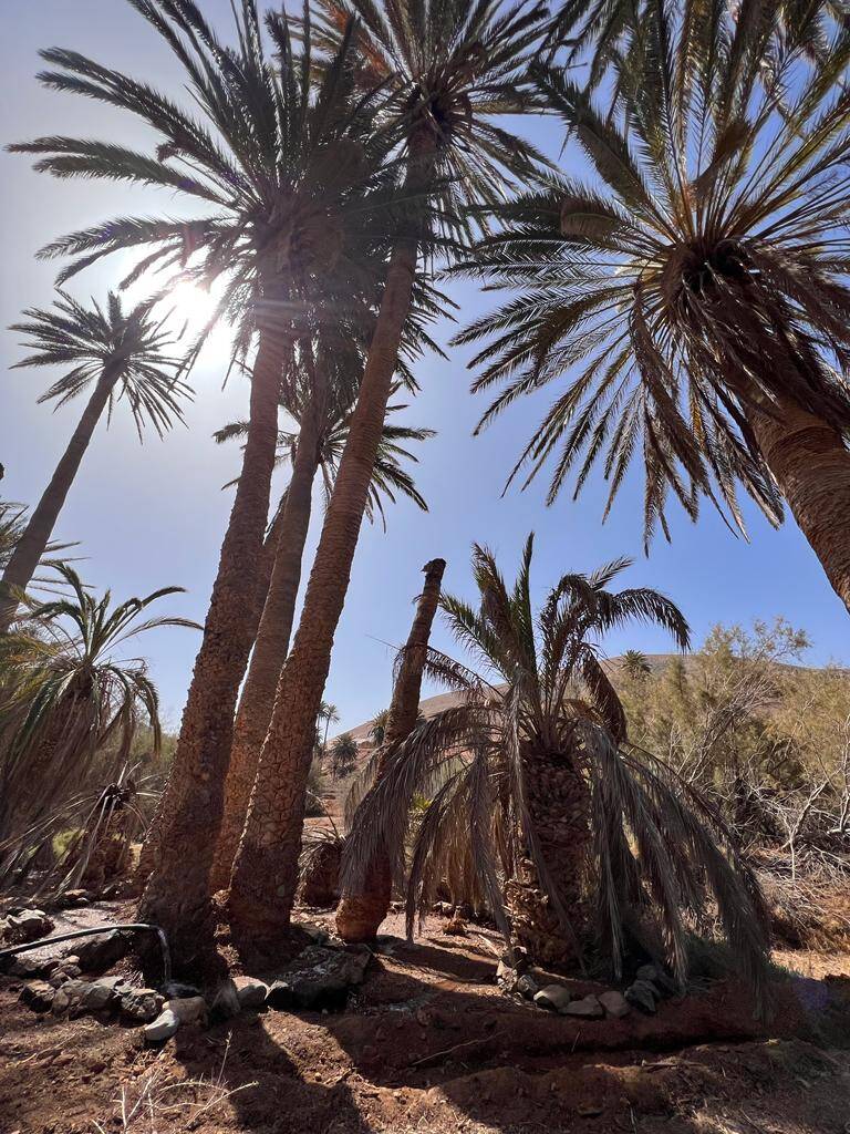El alcalde de Pájara, Pedro Armas, transmite sus agradecimientos al personal contratado a través del Plan de Empleo municipal por la labor de recuperación que está acometiendo para salvar las palmeras centenarias de la Finca de Ajuy.