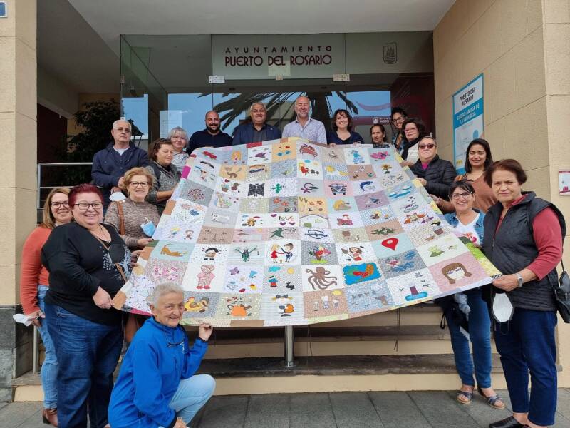 En la mañana de este miércoles, representantes de la asociación vecinal, así como su presidente, Javier Alonso, presentaban esta manta solidaria al alcalde del Ayuntamiento capitalino, Juan Jiménez, al concejal de Participación Ciudadana y Pueblos y Barrios, David Perdomo, así como junto a la concejala de Servicios Sociales, Yanira Domínguez, y el concejal de Educación, Eduardo Tarquis, y por supuesto, también estuvieron presentes en la presentación de este proyecto las protagonistas de este gran trabajo solidario: las mujeres autoras de esta manta, así como la profesora que impartió los talleres, María del
