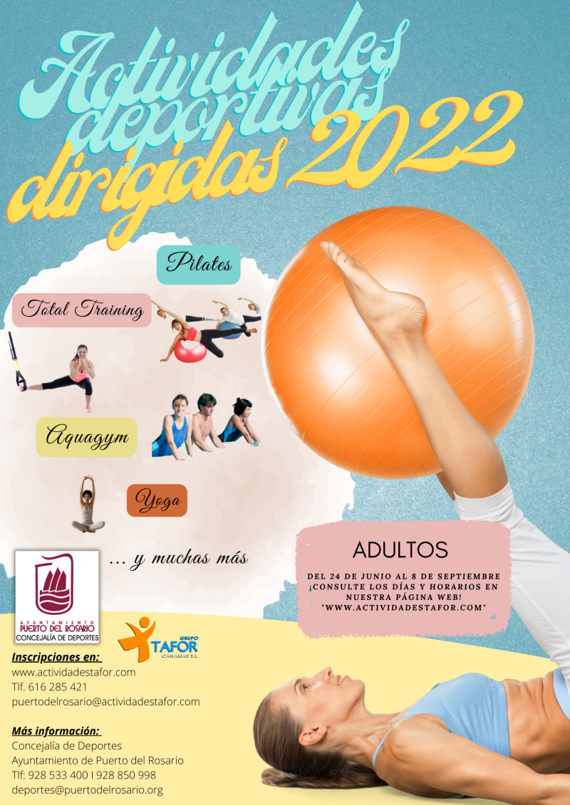 Para los adultos también se ha diseñado un especial programa de actividades deportivas dirigidas que se impartirán de lunes a viernes en horarios de mañana y de tarde, siendo el horario de mañana de 8.00 a 13.30 horas, y el de tarde de 16.00 a 19.30 horas, en los que se impartirán distintas modalidades deportivas como el Entrenamiento funcional; Total Training; Mantenimiento; Aquagym, y Pilates/Yoga, entre otras.