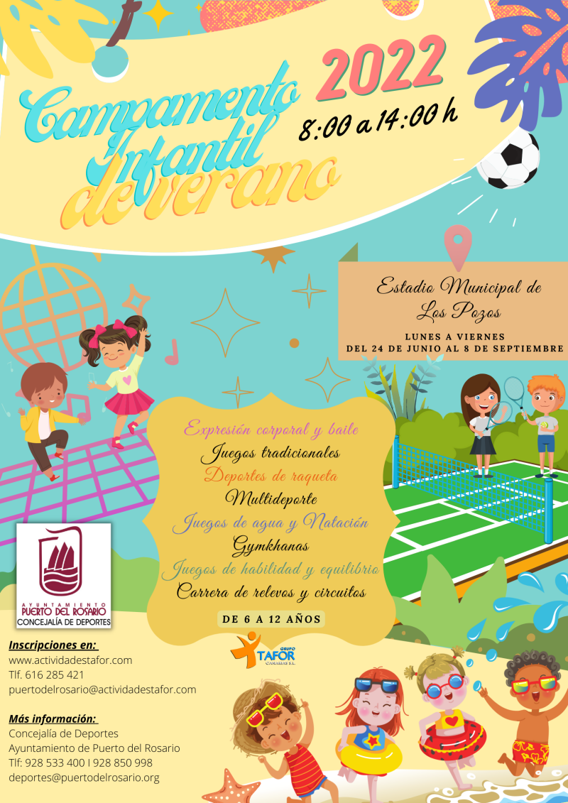 Por su parte, el Campamento de verano organizado para este 2022 va dirigido a niños y niñas de entre 6 a 13 años de edad, y se llevará a cabo de lunes a viernes en horario de 8.00 a 14.00 horas en el Estadio Municipal de Los Pozos.