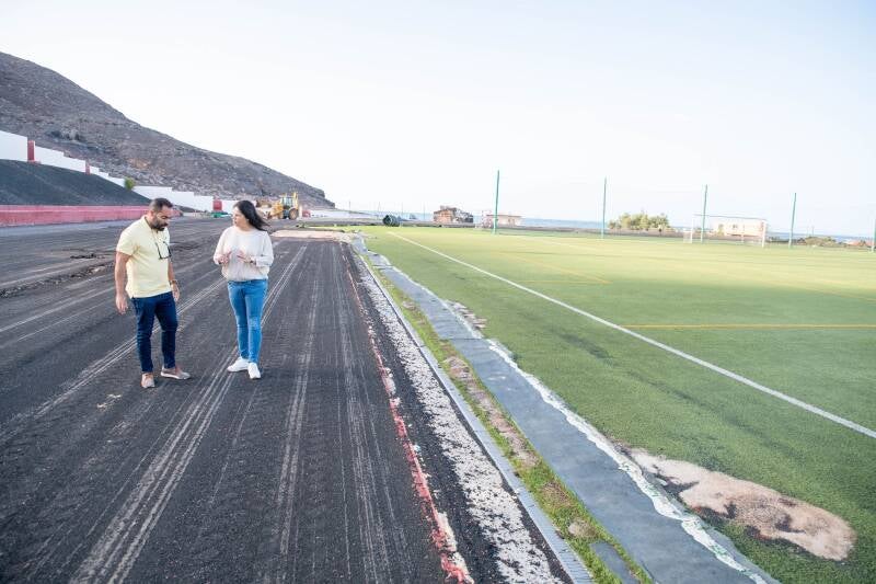 La alcaldesa de Tuineje, Esther Hernández, y el concejal de Deportes, Christian Cabrera, han estado visitando las obras que se están realizando en la pista de atletismo, que se encuentra dentro del campo de fútbol de Gran Tarajal. Se trata de una de las pocas pistas de las que se dispone en la isla de Fuerteventura y la única situada al sur de la isla.