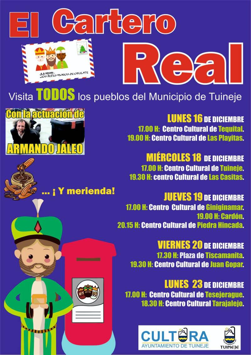 A partir de hoy, lunes 16, el Cartero Real visitará diferentes puntos de Tuineje, donde los más pequeños no sólo podrán entregar sus cartas, sino disfrutar de una merienda especial y el espectáculo a cargo de Armando Jaleo.