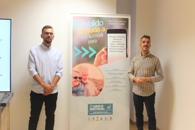 El Cabildo de Fuerteventura, a través de la Consejería de Innovación, ha presentado hoy, martes, día 4 de octubre, el programa de cursos de competencias digitales para mayores que se imparte en todos los municipios de Fuerteventura. La finalidad de esta formación es dar a conocer a los mayores cómo manejar los móviles, internet y otras herramientas digitales necesarias para desenvolverse en la vida diaria.