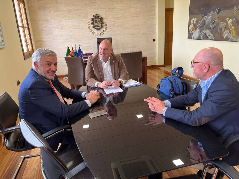 El presidente del Cabildo de Fuerteventura Sergio Lloret se ha reunido la mañana de hoy, miércoles 8 de febrero de 2023, con Lluís Serra, Rector de la Universidad de Las Palmas, y el Vicerrector de Cultura, Deporte y Activación Social, José Miguel Álamo Mendoza, para concretar la programación de actividades en las que participan conjuntamente las dos entidades.