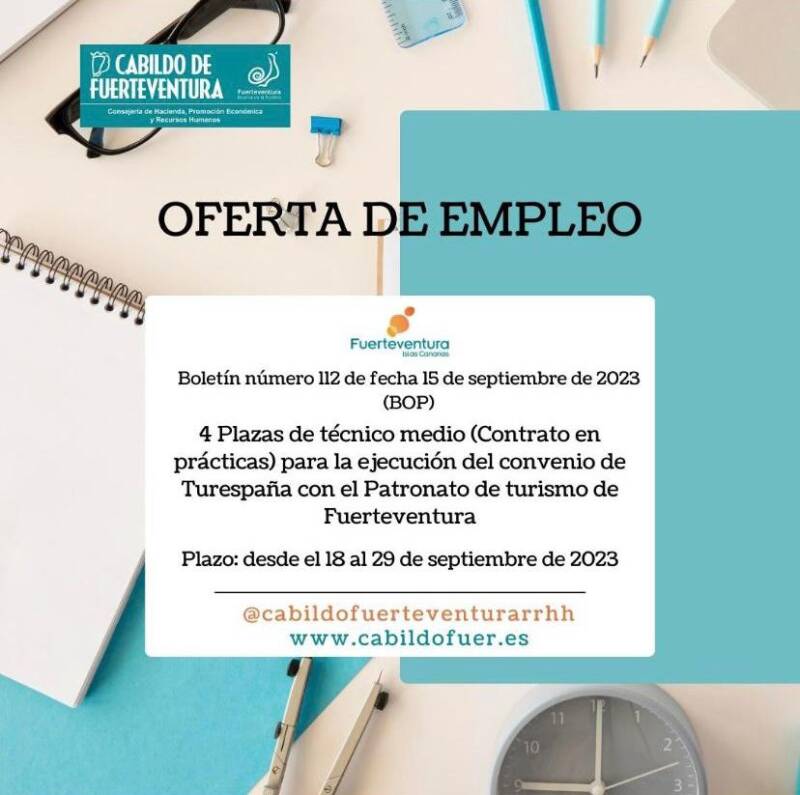 El Cabildo de Fuerteventura, a través del área de Turismo, que dirige Marlene Figueroa, recuerda que el plazo de la convocatoria para seleccionar las cuatro plazas de promotores turísticos en las oficinas españolas de turismo en Berlín, París, Dublín/Londres y Varsovia finaliza este viernes, 29 de septiembre.
