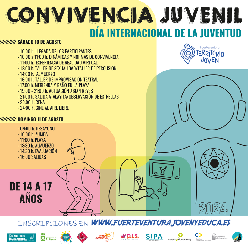 Paralelamente se llevará a cabo un campamento juvenil hasta el domingo 11 de agosto, para jóvenes residentes de Fuerteventura entre 14 y 17 años. Quienes participen en esta convivencia contarán gratuitamente con servicio de transporte y comidas, así como una serie de actividades adicionales el domingo, como una clase de zumba o una salida a la playa.