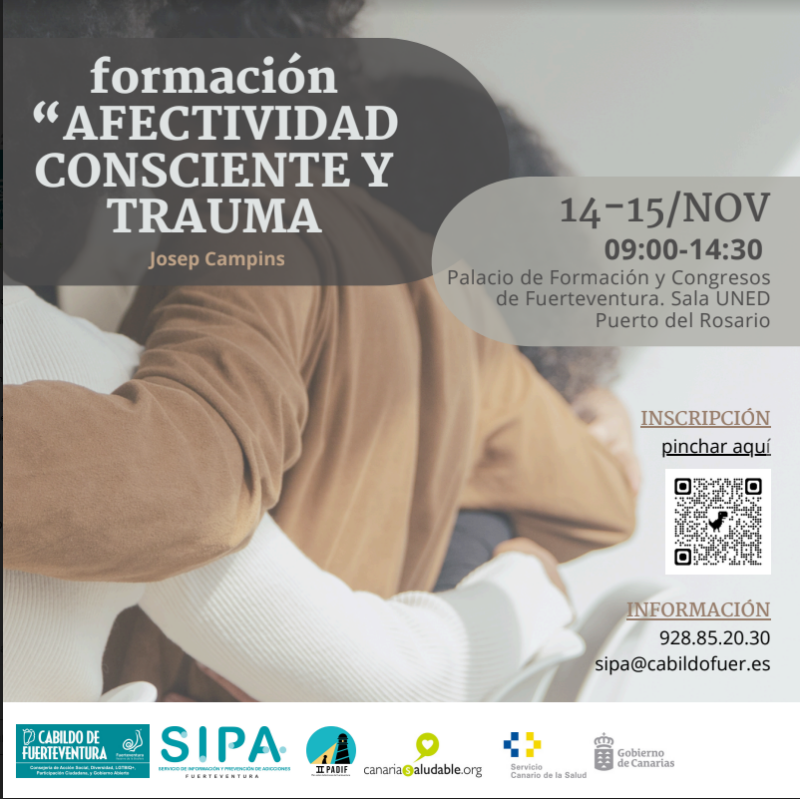 El Cabildo de Fuerteventura, a través de la Consejería de Acción Social, que dirige Víctor Alonso, ha lanzado la formación ‘Afectividad consciente y trauma’, dirigida a profesionales que intervienen con menores en situación de adicción. Este curso, que se llevará a cabo los días 14 y 15 de noviembre, de 09:00 a 14:30 horas, en la sala UNED del Palacio de Formación y Congresos, es parte del programa Di un no a las adicciones (Duna), enmarcado dentro del II Plan de Adicciones de la Isla.