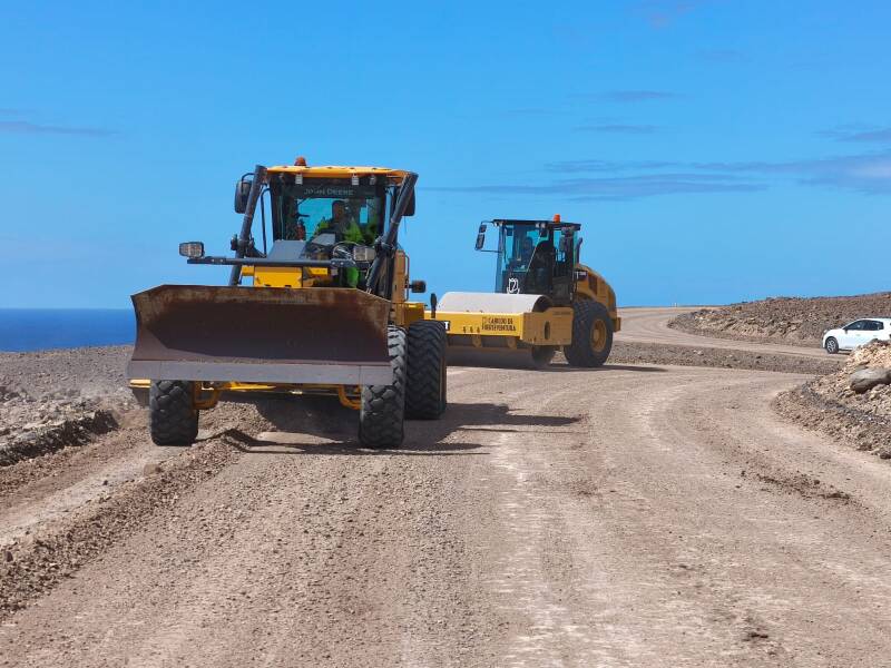 Cabe recordar que el pasado mes de febrero, otro de los trenes de recebe del Cabildo de Fuerteventura dedicó varias semanas en mejorar la carretera de tierra que une Corralejo con El Cotillo, siguiendo el litoral norte de la isla a través de Majanicho. El Servicio de Obras y Maquinaria que dirige Blas Acosta adecuó en esa ocasión los 16 kilómetros de carretera que separan ambos núcleos de población para el tránsito seguro de vehículos.