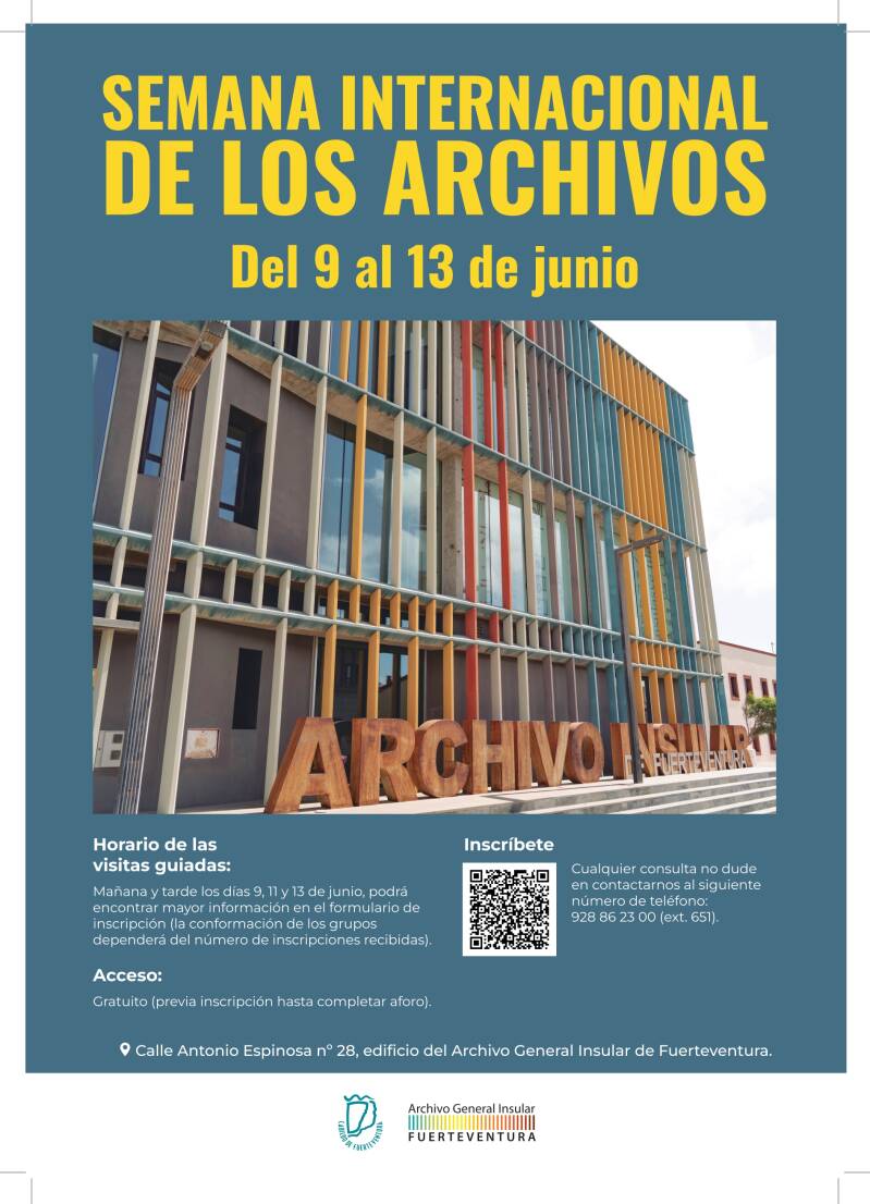 El Cabildo de Fuerteventura, a través de Patrimonio Cultural y el Archivo General Insular, organiza un programa de actividades con motivo de la Semana Internacional de los Archivos centrado en la accesibilidad y difusión del patrimonio documental de la isla, bajo el lema impulsado por el Consejo Internacional de Archivos (ICA), ‘Archivos Accesibles: Archivos para tod@s’.