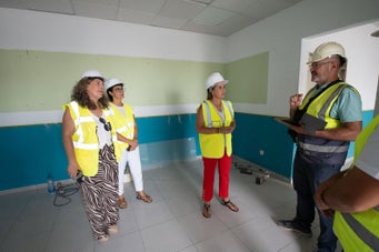 La presidenta del Cabildo, Lola García, y la consejera de Turismo, Marlene Figueroa, comprobaron de primera mano el avance de las obras, acompañadas por la consejera de Industria, Lolina Negrín.